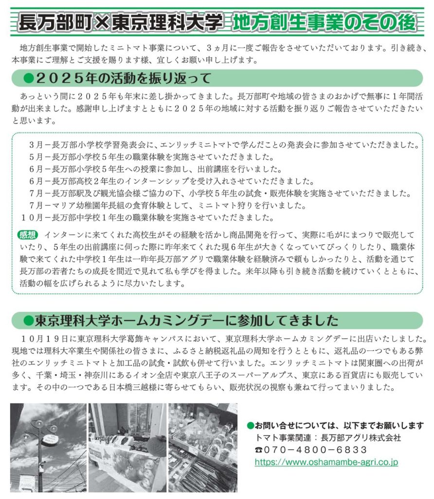 広報長万部12月号掲載『長万部町×東京理科大学地方創生事業のその後』